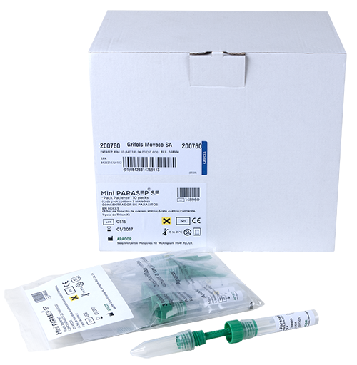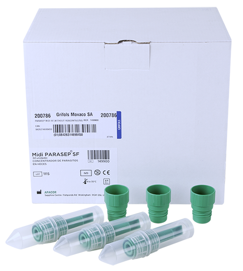 Mini Parasep ® SF es un producto completamente ecológico que no necesita acetato de etilo, facilita la preparación, centrifugación, concentración y montaje de las muestras de heces para detección de huevos, quistes y larvas de parásitos intestinales para su análisis coprológico.