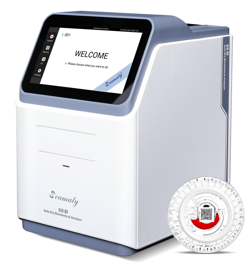 Seamaty SD1 es un analizador químico totalmente automatizado diseñado para pruebas in situ. Puede proporcionar un diagnóstico médico más rápido, sencillo y preciso utilizando 0,1 cc de sangre entera, suero o plasma. Utilizando la computación en la nube, SD1 puede ayudar a los operadores a tomar decisiones médicas de forma remota. Centrífuga incorporada, código QR, control de calidad en tiempo real. Los resultados de la prueba se imprimirán automáticamente después de 12 minutos.